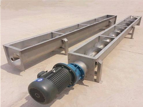 一般情況下,出廠總裝時將螺旋輸送機中間節按長度長短依次排列,長的中間節靠近頭節,相同長度的中間節則挨在一起,如果有特殊要求,則在訂貨時給出排列順序。在螺旋輸送機頭節內裝有支推軸承承受軸向力,在中間節和尾節內裝有用軸承支承螺旋軸,此外,在螺旋輸送機尾節內還裝有可軸向移動的徑向軸承以補償螺旋軸長度的誤差和適應溫度的變化。螺旋輸送機螺旋面的形式有實體螺旋(S制法)和帶式螺旋(D制法)兩種。各螺旋軸之間采用法蘭式聯接, 保證了聯接軸的互換性,便于維修。螺旋輸送機機蓋為瓦片式并用蓋扣夾緊在機殼上,若需改進密封性能,用戶可自行在機蓋與機殼間加防水粗帆布。 螺旋輸送機進、出料裝置有進料口,方型出料口,手推式出料口,齒條式出料口四種,由用戶在使用現場在機體上開口焊接。