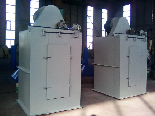 含塵氣體由進氣口進入灰斗或儲灰箱,通過花板孔或直接通過花板孔三種方式進入濾袋。含塵氣體透過濾袋變為凈氣,進入箱體,再經箱體上部排氣口,由風機排走。粉塵積附在濾袋的內表面,且不斷增加,使袋收塵器的阻力不斷上升。當阻力上升到1500—2000Pa時為了使袋收塵器繼續工作,需定期濾袋上的粉塵。具體清灰時, 先關閉頂上風機,搖動電機上偏心作用,帶動連桿,使搖動軸左右來回轉動,濾袋就呈波紋狀態,使粉塵掉下,卸出。